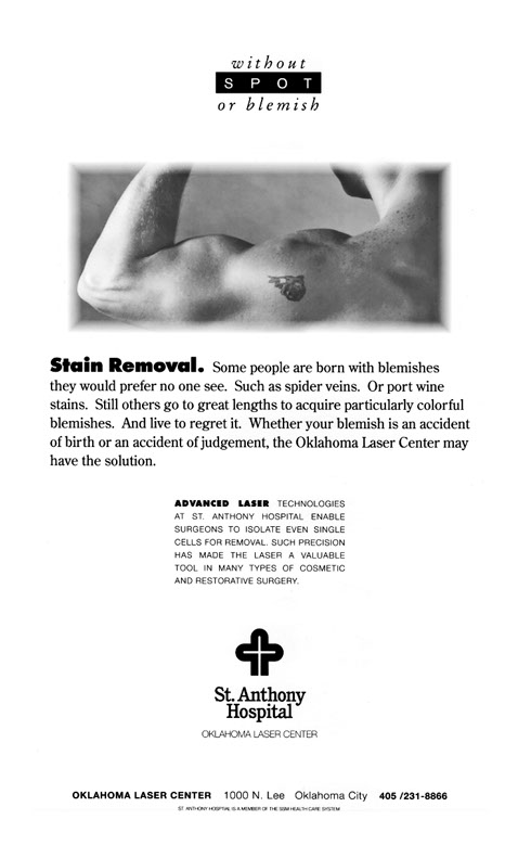 This ad and the next one, developed in conjunction with Read Studio, dictated the look, feel and tone of St. Anthony Hospital print advertising for several years.