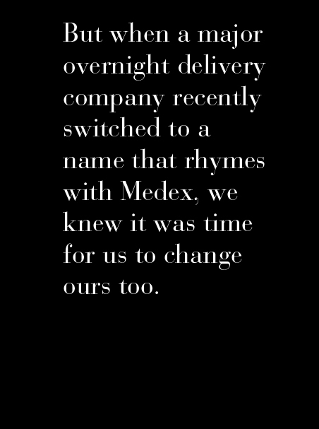 Renaming announcement flyer for the transition from Medex to Synaptek. (Inside right)